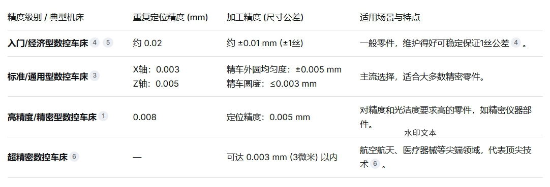 下表汇总了典型机床的精度指标,方便你快速了解不同档次设备的加工能力: