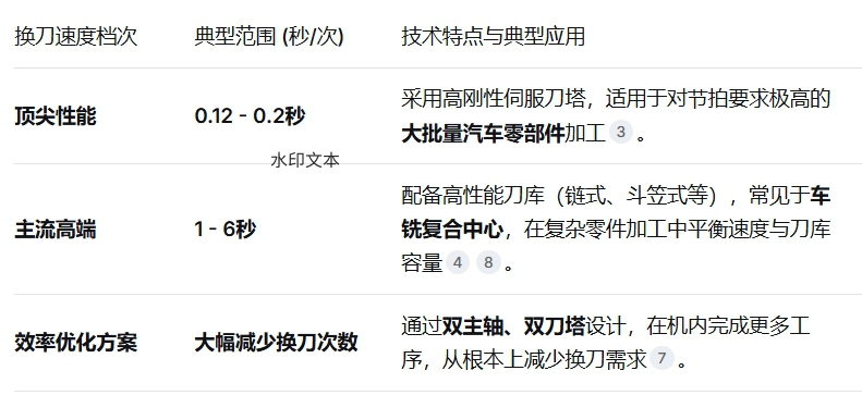对于高端数控车床,追求的是“秒”级甚至“亚秒”级的极致换刀速度,以减少加工中的非切削时间。