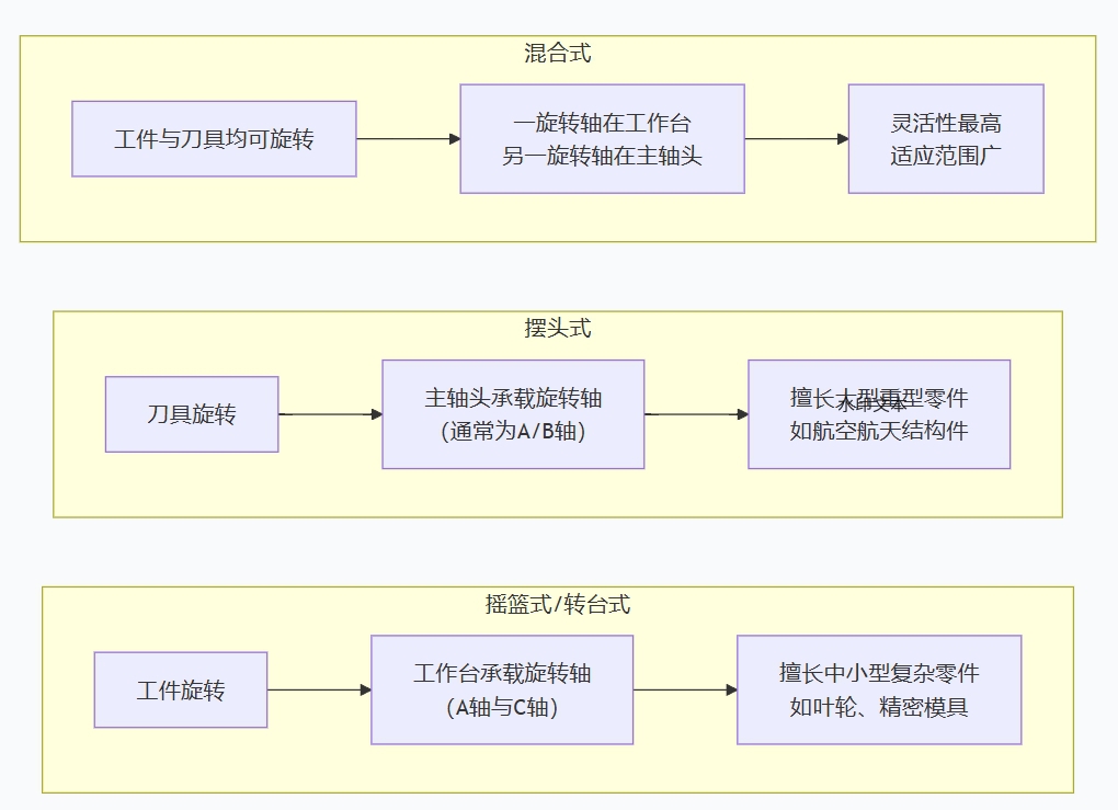 希望这个解释能帮助你透彻理解。如果你对特定结构类型(比如哪种更适合加工某种零件)、或者五轴编程的核心——刀具中心点控制技术想有更深入的了解,我们可以继续探讨。